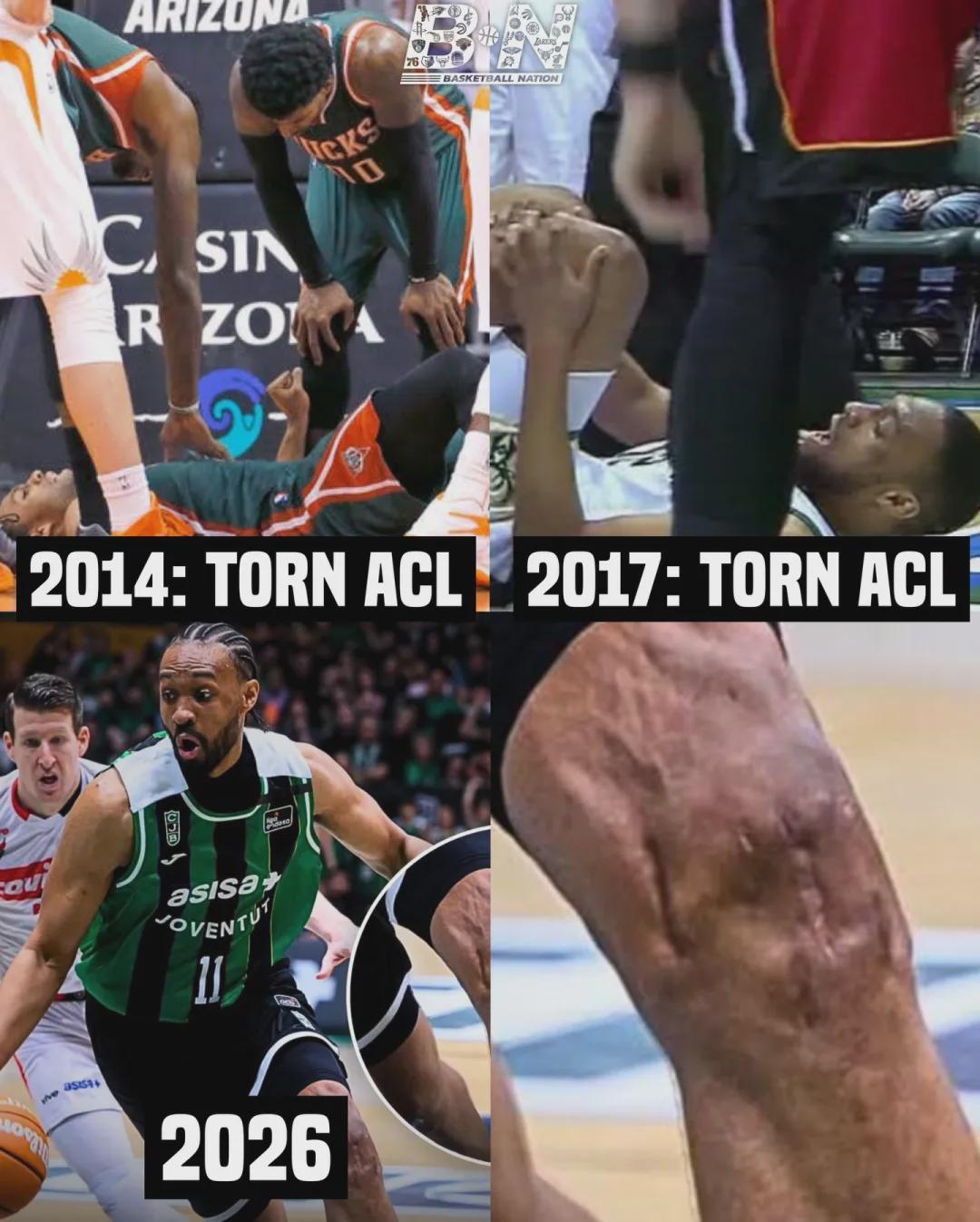 还记得前NBA榜眼秀贾巴里-帕克吗?近日他因为一张照片登上热搜。贾巴里-帕克目前在西班牙打球,媒体Courtside Buzz晒出帕克的赛场照:左膝盖两条手术疤痕非常明显。评论区的球迷写道:“如今帕克还在打篮球,我对此充满敬意。”