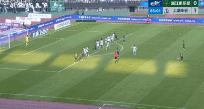 第10分钟,申花角球机会,浙江解围至弧顶,特谢拉不停球撩射破门,申花1-0领先浙江。