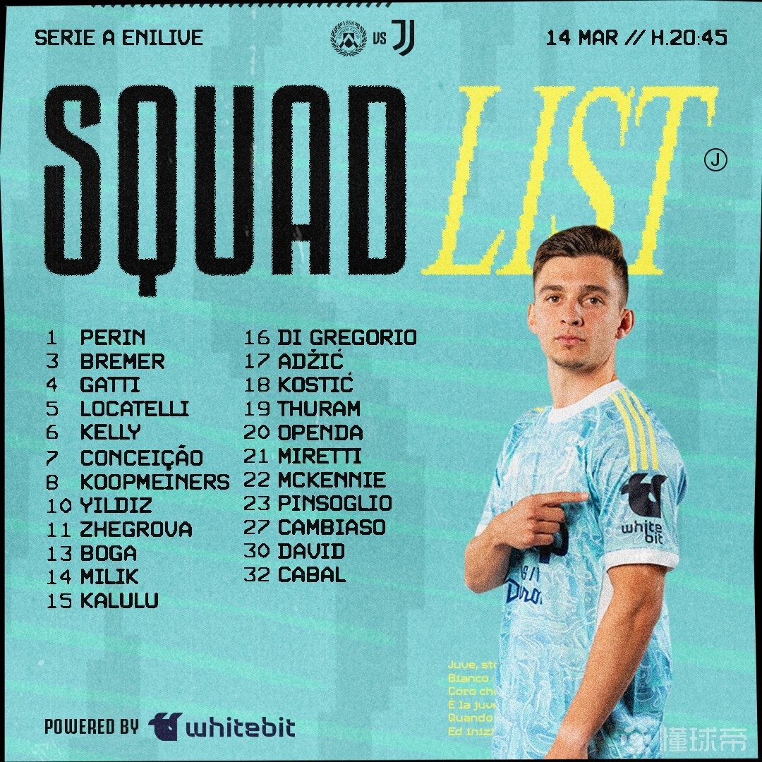 尤文客战乌迪内斯大名单: